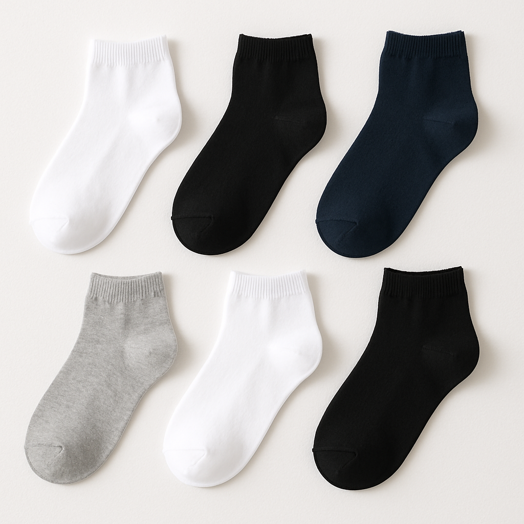 استمتع بالراحة والأناقة مع عبوة جوارب هاف سوكيت المكونة من 6 أزواج، والمصممة للارتداء طوال اليوم واستخدامات متعددة. تتميز هذه الجوارب بمزيج من الألوان الكلاسيكية - الأبيض، الأسود، الأزرق الداكن، والرمادي الفاتح - وهي مثالية للملابس اليومية، سواء كنت في العمل، أو تذهب إلى النادي الرياضي، أو تسترخي في المنزل.
