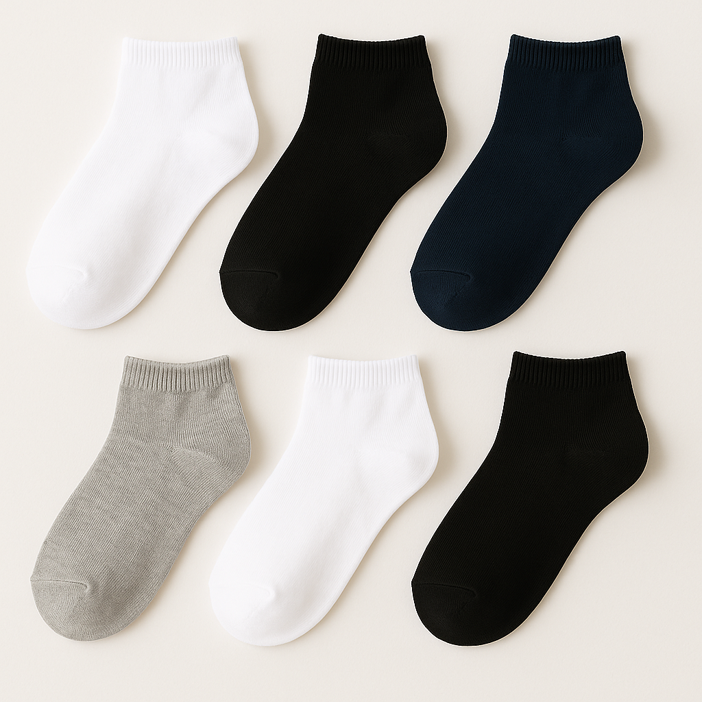 ستمتع بالراحة والأناقة مع عبوة جوارب هاف سوكيت المكونة من 6 أزواج، والمصممة للارتداء طوال اليوم واستخدامات متعددة. تتميز هذه الجوارب بمزيج من الألوان الكلاسيكية - الأبيض، الأسود، الأزرق الداكن، والرمادي الفاتح - وهي مثالية للملابس اليومية، سواء كنت في العمل، أو تذهب إلى النادي الرياضي، أو تسترخي في المنزل.